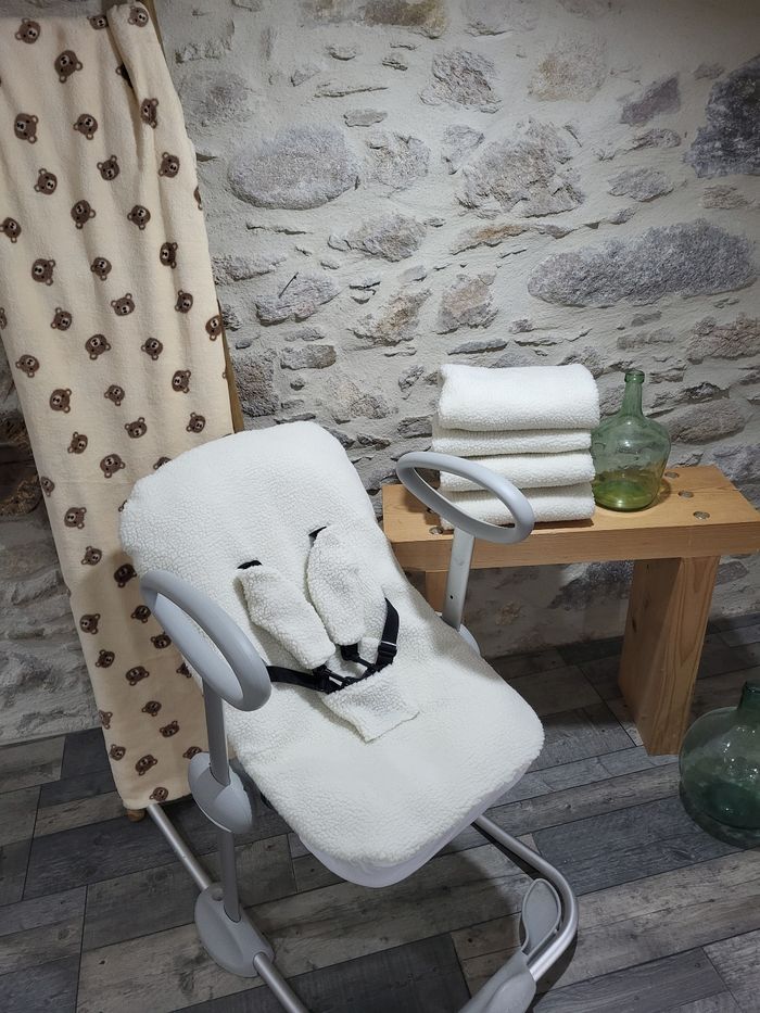 Housse qui s'ajoute à l'assise ( coussin) d'origine béaba . Sherpa écru. Accessoires sangles et entre jambe assortis. Site internet Lavable en machine à 30° Page fb Zol&Saan confections Zolsaanconfections.com