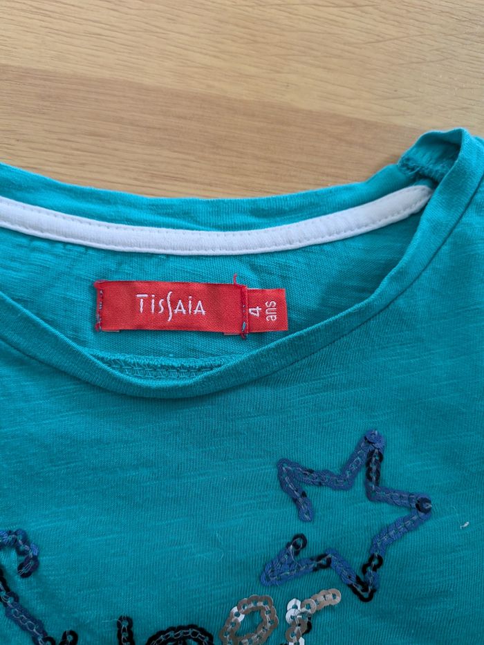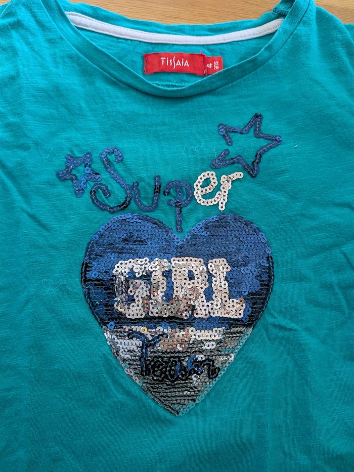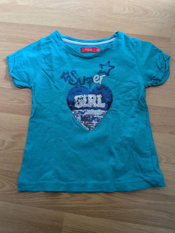 Je vends ce t-shirt coloré et ludique de la marque Tissaia, taille 4 ans. Un modèle parfait pour les petites filles dynamiques ! Design : Couleur turquoise vive avec un grand motif cœur central et l'inscription "Super Girl". Détails : Le motif est réalisé en sequins réversibles ou brillants, apportant une touche de fantaisie. Matière : 100% Coton, doux et respirant pour le quotidien. État : Très bon état. Envoie rapide Réductions sur lot dès 50%