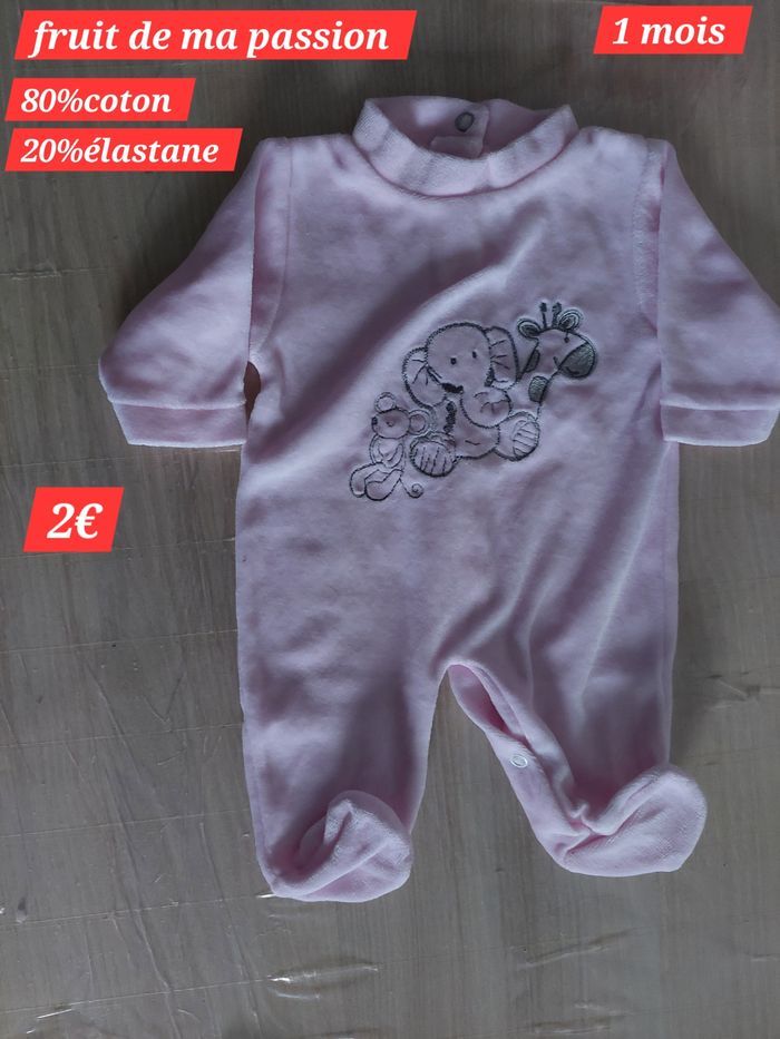 Vends Grenouillère fille naissance Elle est en très bon état car très peu mise vu la quantité de vêtements Il y a écrit 1mois mais taille petit c'est plus pour la naissance Maison non fumeur