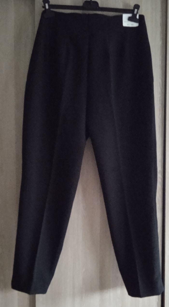 Bonjour je vends un beau pantalon à pinces couleur noir 2 poches 1 bouton et 1 fermeture ferment le pantalon il taille super bien parfait avec une chemise couleur rose ou verte et une paire de bottines ou sandales couleur noir pour un style chic et beau. Convient mieux à 1 taille 42