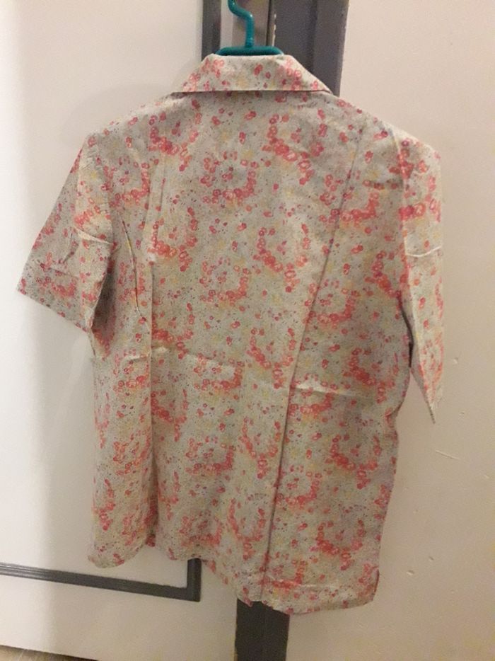 Chemise légère en très bon état de la marque Claude de Saivre taille 40. Les boutons sont nacrés. Motifs fleuris couleur corail