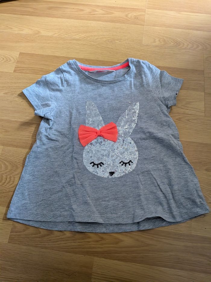 T-shirt gris H&M - Motif Lapin à paillettes & nœud 3D - - photo numéro 1