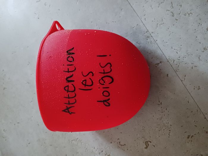gant cuisine en silicone rouge Attention les doigts