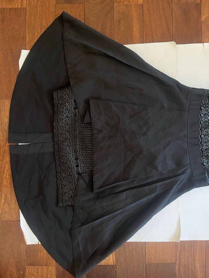 Robe noire mi longue layering dentelle asymétrique boutique indépendante taille S - photo numéro 7