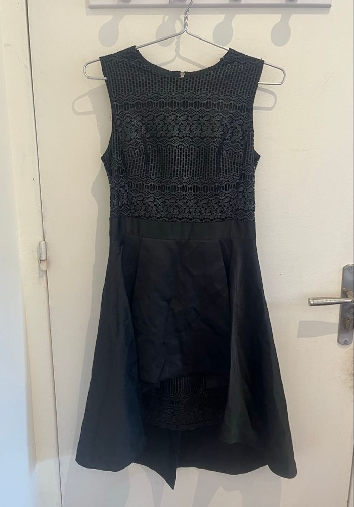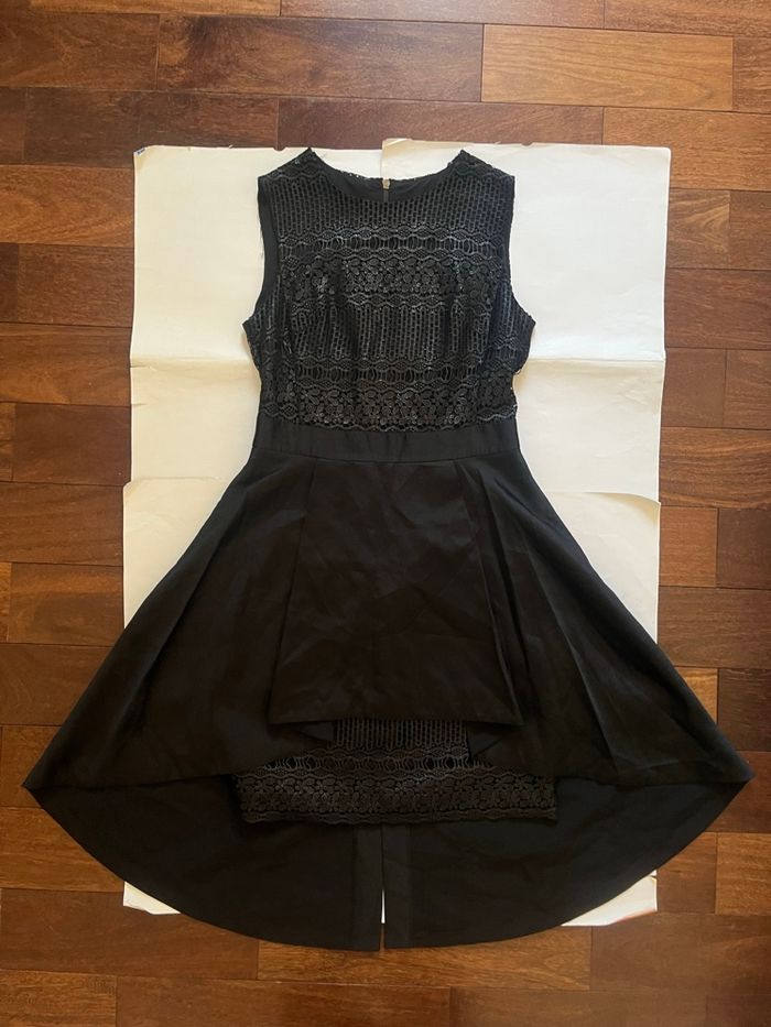 Robe noire mi longue layering dentelle asymétrique boutique indépendante taille S - photo numéro 1