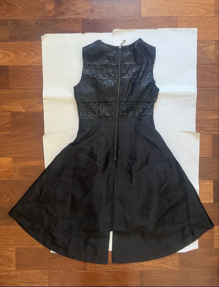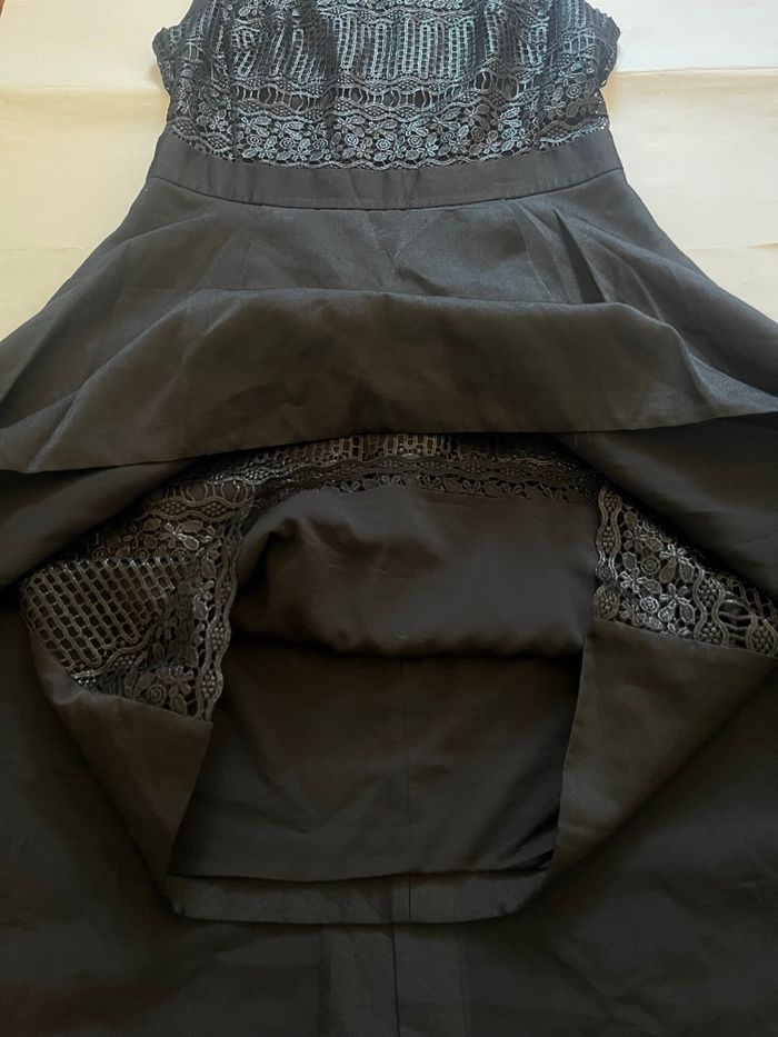 Robe noire mi longue layering dentelle asymétrique boutique indépendante taille S - photo numéro 4