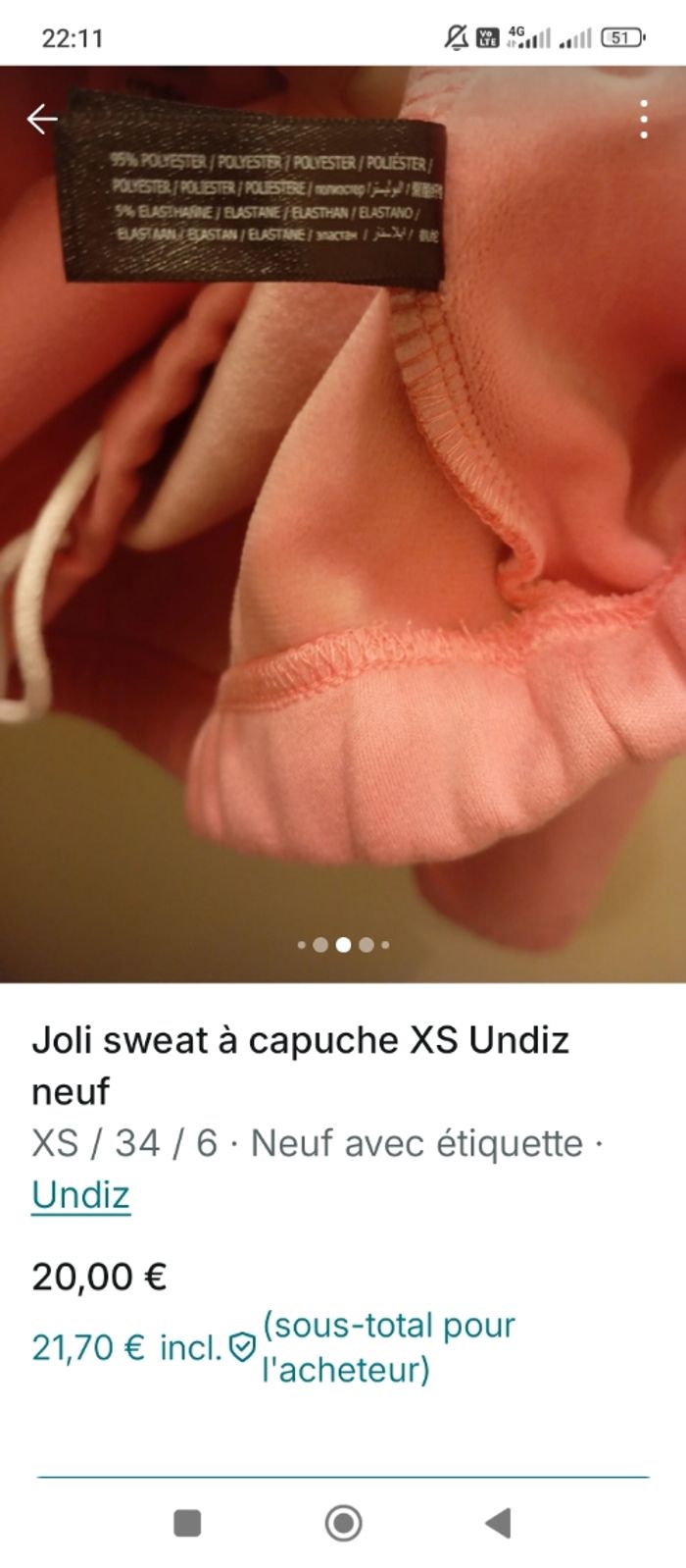 Sweat capuche rose Undiz XS - photo numéro 7