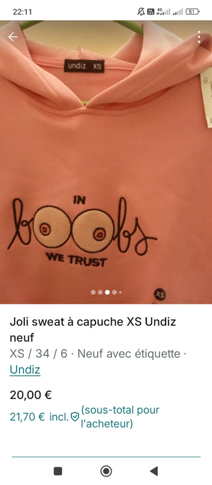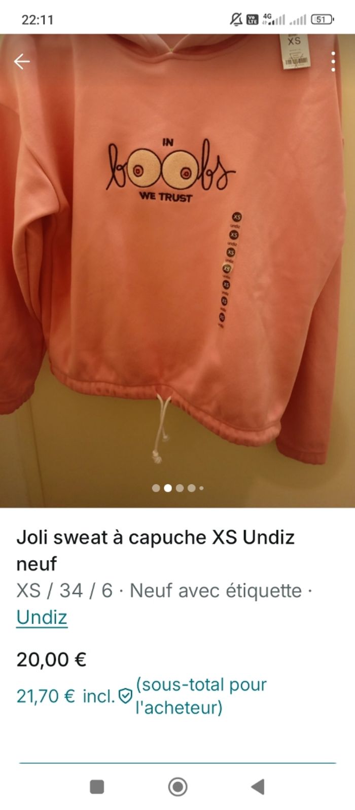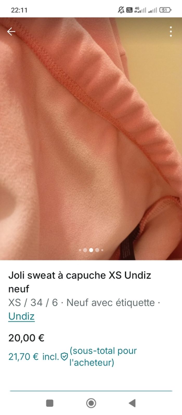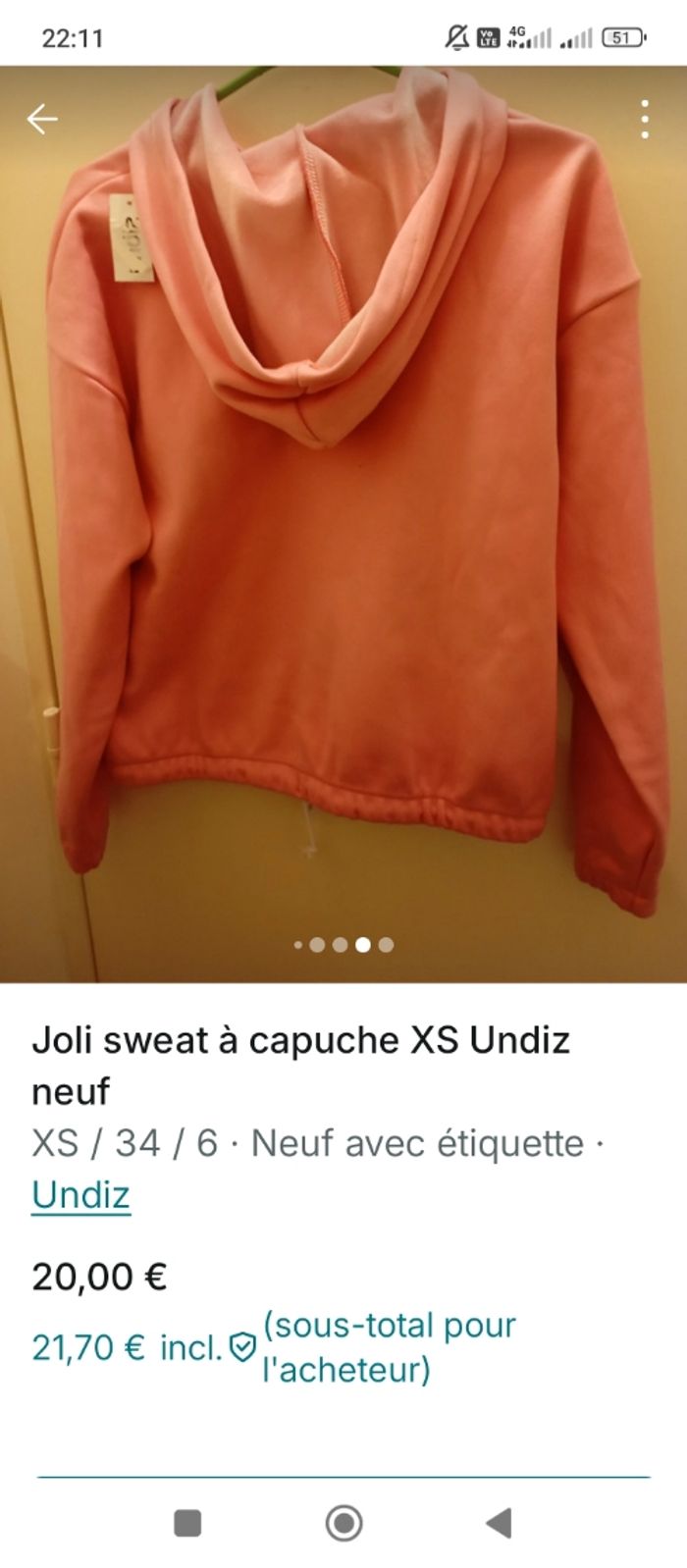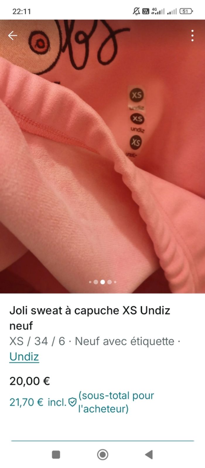 Sweat capuche rose Undiz XS - photo numéro 4