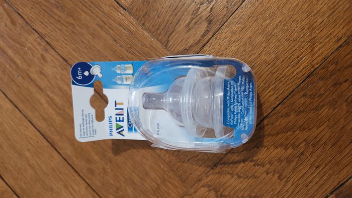 Lot de 2 tétines pour biberon de marque Philips AVENT Classic+ en taille > 6 mois avec ouverture en Y. Anti-coliques, compatibles Airfree. Coloris assortis Neuves encore emballées Maison non fumeur et sans animaux