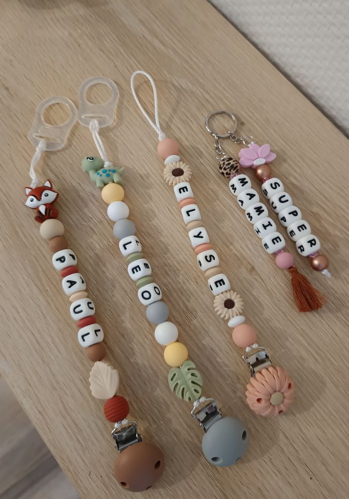 Je réalise vos attaches tétine personnalisées selon vos envies 💕 Prénom, couleurs, thème… nous créons ensemble le modèle parfait. ✨ 14€ l’attache tétine ➕ Adaptateur MAM : +1€ 💎 Énormément de perles et motifs disponibles 📩 Écrivez-moi pour qu’on crée ensemble votre modèle unique Créations faites à la main avec soin 🤍
