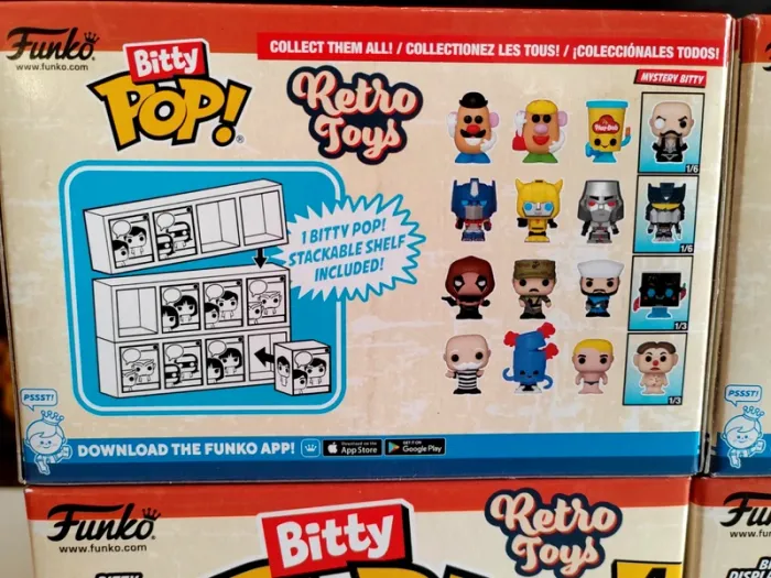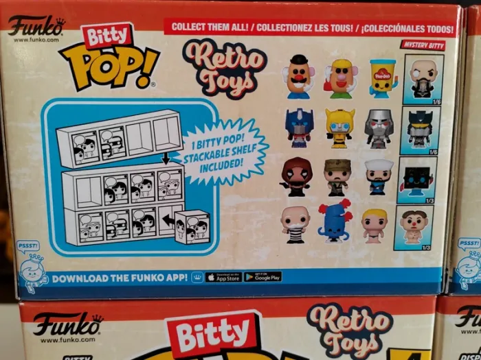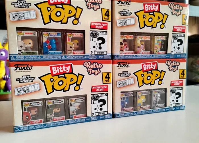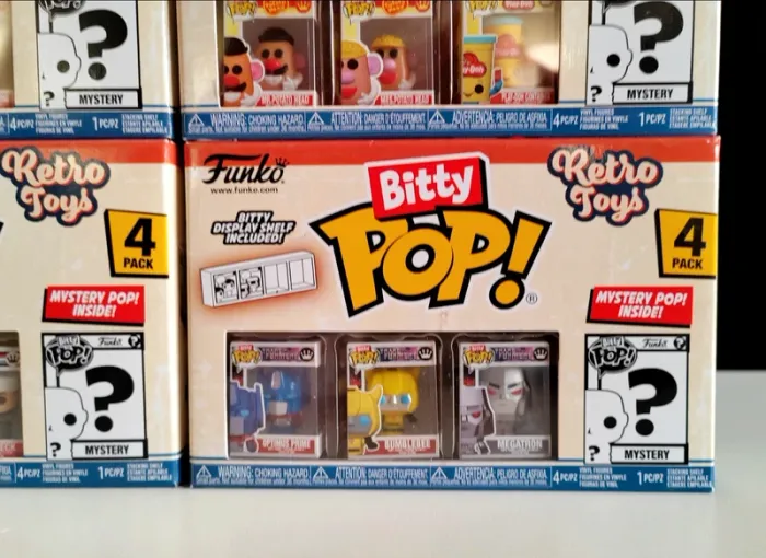 Lot de 3 Pack de 4 Figurines Funko Bitty POP - Vintage, Retro Toys 1/ Transformers 2/ Mr. Monopoly 3/ Mr. Potato Head 4/ GI Joe Au total les 16 figurines de la collection Neuve, jamais ouverte Possibilité de les acheter à l'unité Voir dans mes ventes Envoi rapide et soigné