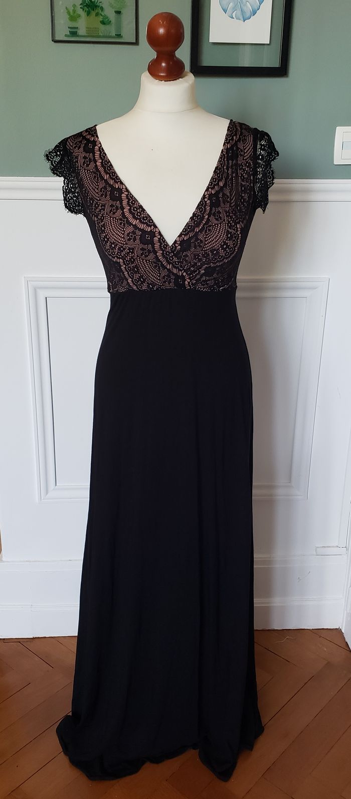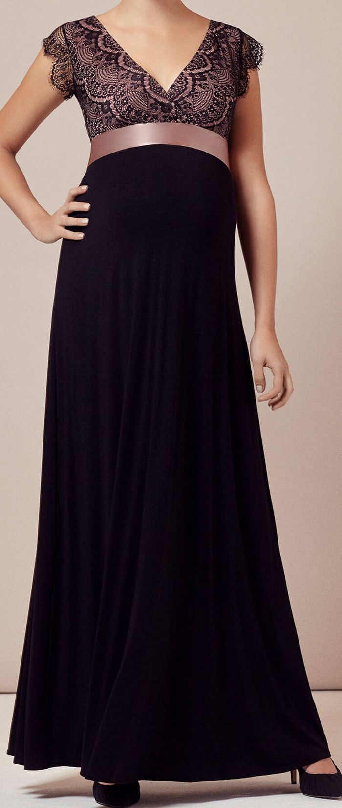 Robe longue de grossesse maternité Tiffany Rose. Modèle Rosa Longue Blush Vintage. Coloris noir, dentelle et rose poudré. Taille 0. Valeur neuve 315 euros. Portée une fois pour un mariage. Maison non fumeur et sans animaux