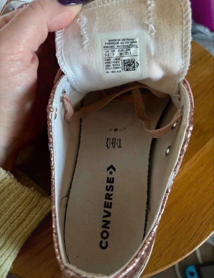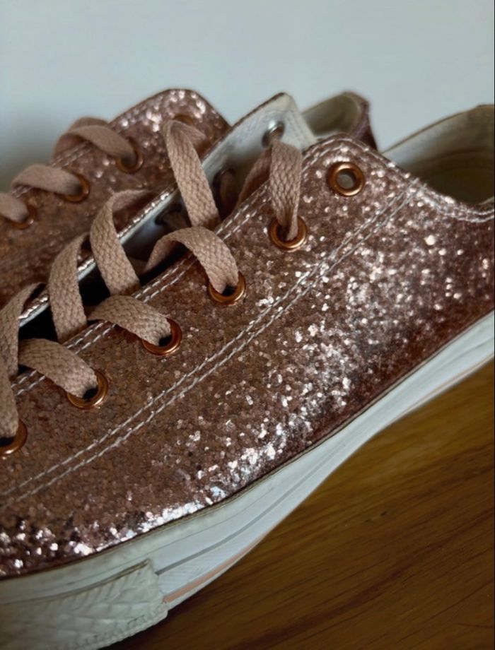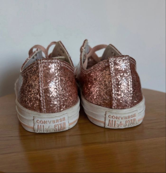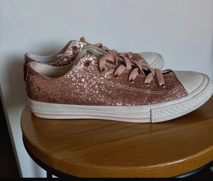 Converse rose pailletées Matière plastifiée donc ne peux pas perdre de paillettes avec le temps Portées quelques fois Converse originales