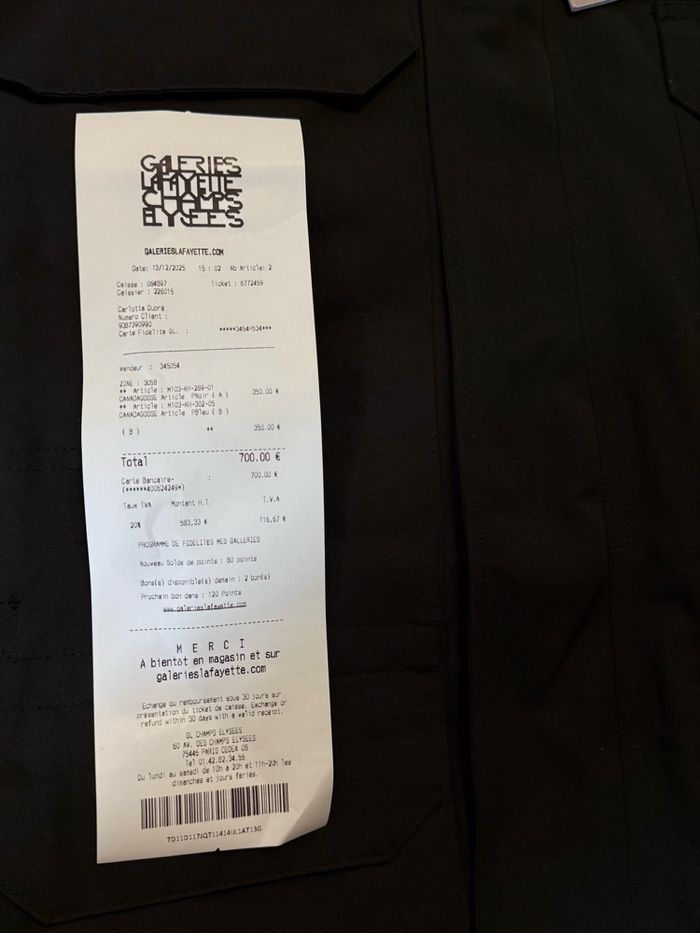 Parka Canada Goose expedition noire taille S Payée 350 euros aux galeries lafayette 120 euros premier arrivé premier servi