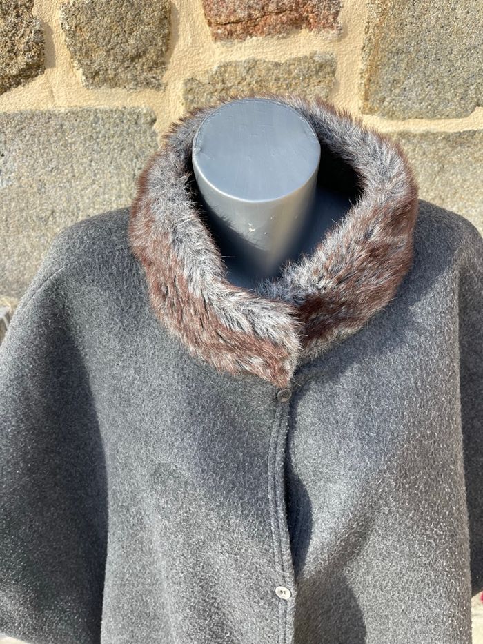 Poncho / cape en maille gris avec col marron - La redoute  - photo numéro 5