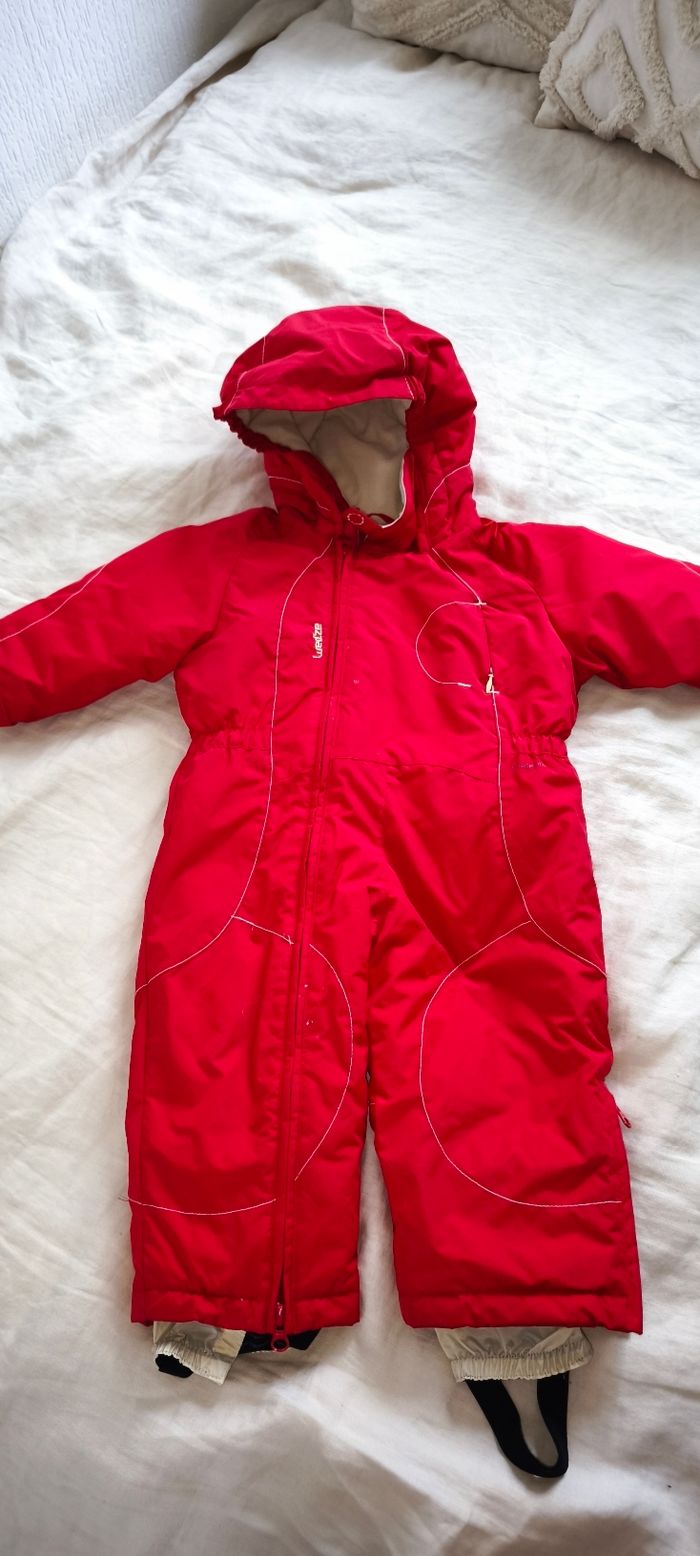 Combinaison ski wed'ze 18 mois Couleur rouge et beige En très bon état Juste le petit dessin à l'arrière légèrement eraffler