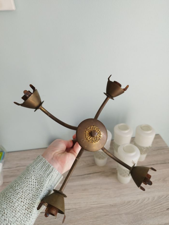 Je vends ce lustre vintage à 4 branches avec un design élégant et des détails soignés. Les 4 globes sont en parfait état sans aucun éclat Très bon état N'hésitez pas à me contacter pour plus d'informations ou de photos. #melissarnaud