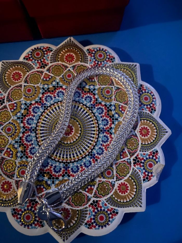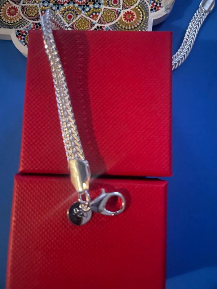Gourmette, maille chenille, longueur 20 cm, largeur 7 mm. Magnifique état, impeccable, placard jour, 925 points gravé, attache, légère, solide et robuste, produits de qualité.