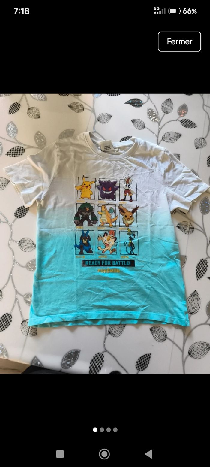 Tee shirt pokémon en taille 10 ans en parfait état. Sans tâche! Porter 1 fois mais mon fils et passer au 12 ans entre temps.