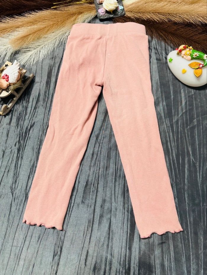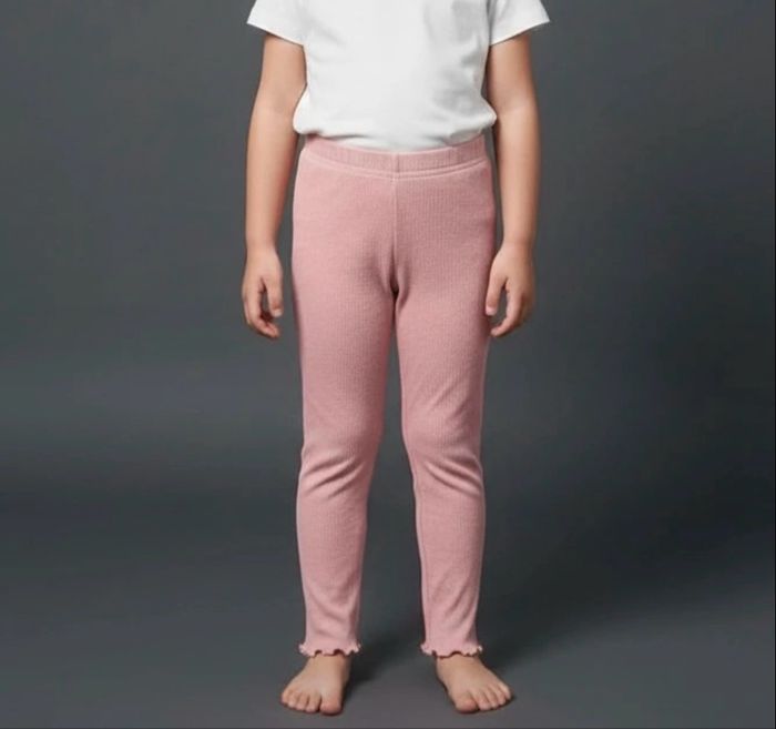 joli pantalon en maille côtelée de couleur rose poudré. Très confortable et extensible, parfait pour le quotidien. Finition "vagues" (lettuce trim) sur le bas des jambes pour une touche adorable. • Très bon état / Comme neuf •Rose pastel • Casual / Confortable • Côtelée, douce et souple