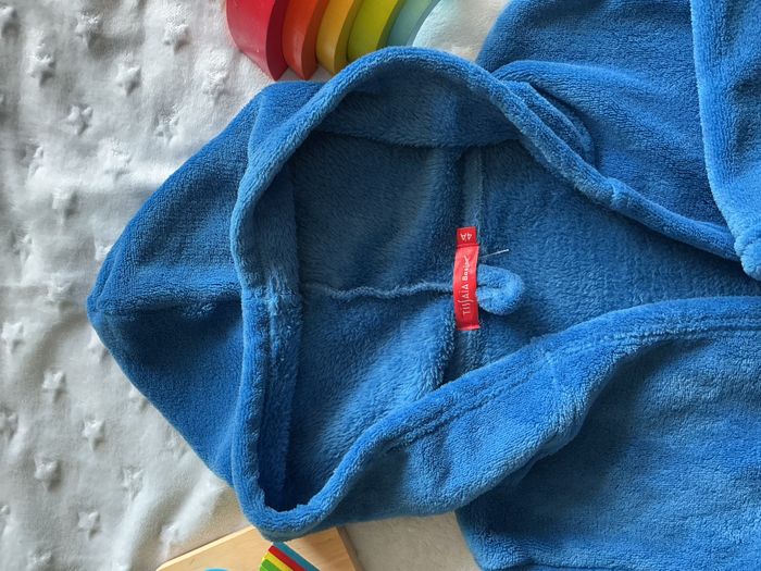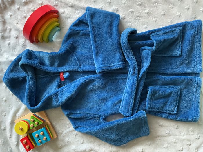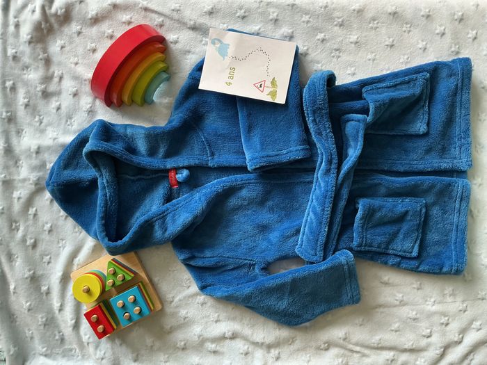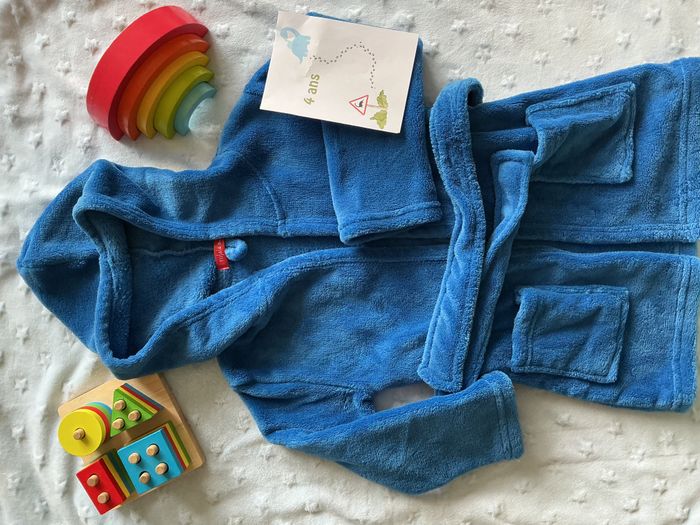 peignoir en velours bleu avec capuche ceinture et poches 4 ans tissaia - photo numéro 1