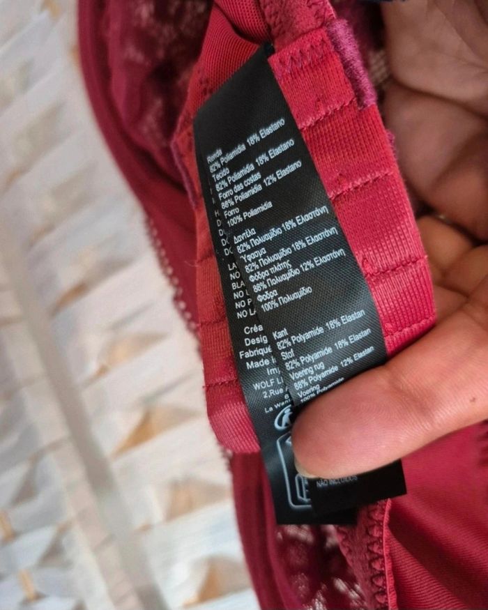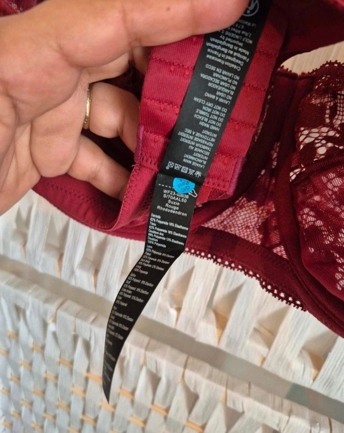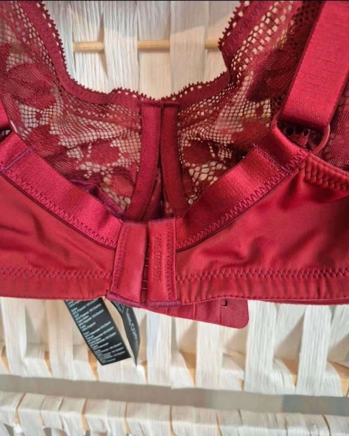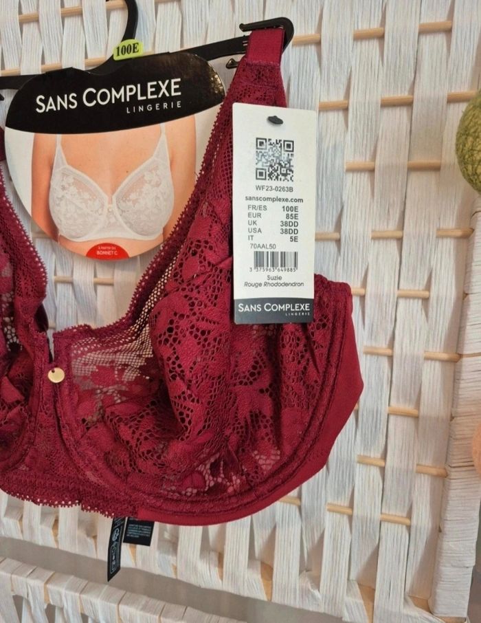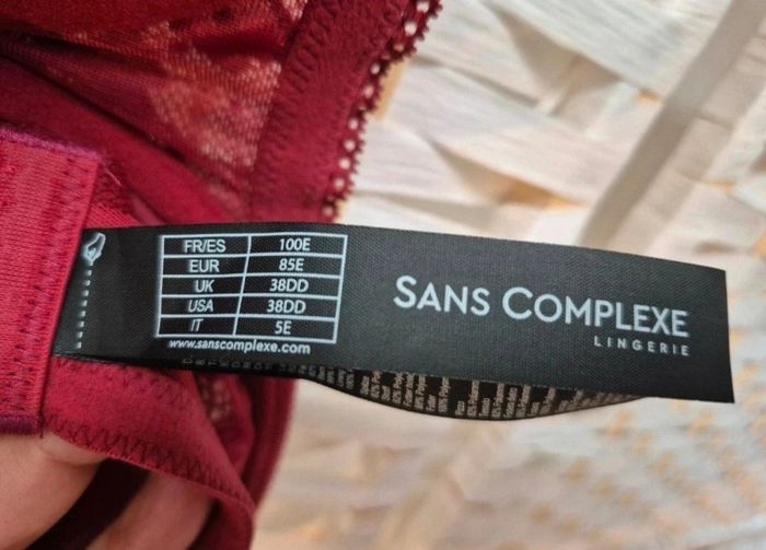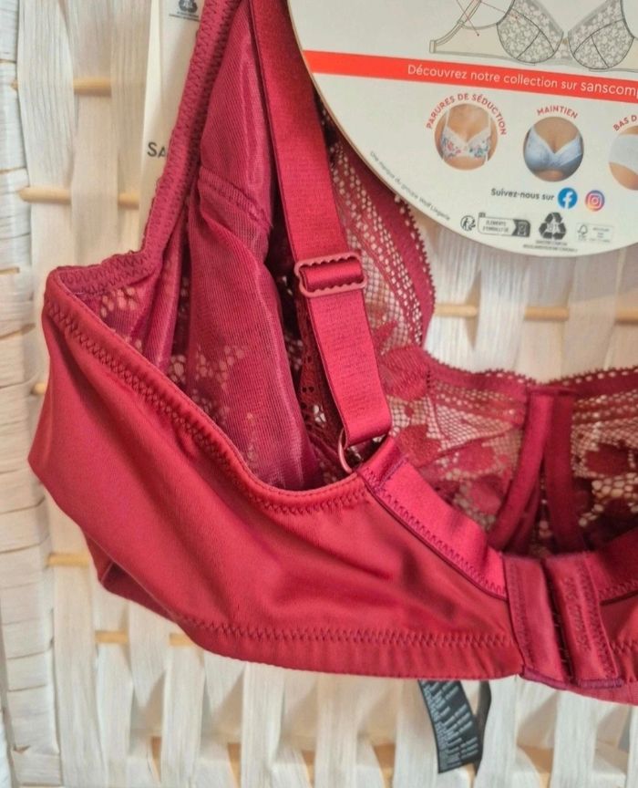 Joli soutien-gorge sans complexe à armatures femme 100E ​ ​Sublime soutien-gorge à armatures de la marque Sans Complexe, modèle Suzie. Une pièce à la fois élégante et ultra-confortable, idéale pour un maintien optimal des poitrines généreuses. • ​🎨 Couleur : Rouge Rhododendron (un bordeaux profond et chic). • ​✅️ État : Neuf, jamais porté, avec toutes ses étiquettes d'origine. • ​Détails : Dentelle florale délicate, petit médaillon doré à l'entre-sein, bretelles larges et réglables pour plus de confort, dos en forme de U (dos cheminée) pour un meilleur maintien. • ​🧵 Composition : Contient au moins 42% de fibres recyclées (éco-responsable). ​📏 Taille : * FR/ES : 100E • ​EUR : 85E • ​UK/USA : 38DD ​✨ Maison non-fumeur 📦 Envoi rapide et soigné 💡 Réductions sur les lots activées ! N'hésitez pas à parcourir mon dressing pour rentabiliser les frais de port. #ribeirozazafemme100E #ribeirozazafemmelingerie ​#sanscomplexe #lingeriefemme #soutiengorge100E #lingeriedentelle #SuzieSansComplexe #Rhododendron #maintienparfait #neufavecetiquette #100efemme #100elingerie #soutien-gorge100e #femme100e #sous-vêtements #sousvetementsfemme #ribeirozazafemme100E #ribeirozazafemmelingerie