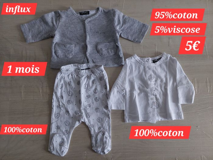 Vends Ensemble 3 pièces 1 mois Il est en très bon état car très peu mis vu la quantité de vêtements Maison non fumeur Le prix d'achat est indiqué sur la photo 1
