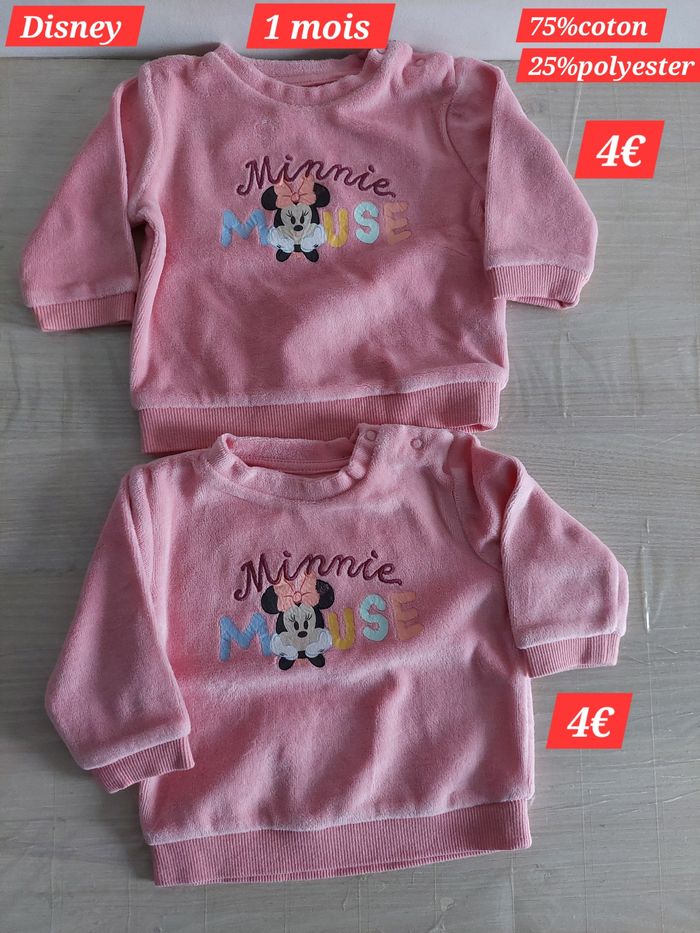 Vends Pull Minnie 1 mois Ils sont en très bon état car très peu mis Maison non fumeur Le prix d'achat est indiqué sur la photo 1 4€ le pull