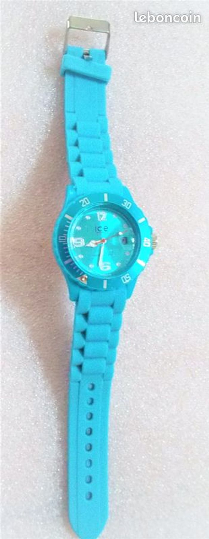 Montre ICE WATCH "Forever", boitier en acrylique de 40 mm, couleur bleu à intérieur bleu effet métallique, chiffres et aiguilles blanches et trotteuse rouge, fonction dateur, et bracelet en silicone bleu assorti, fonctionnante, pile fourni, prix définitif.