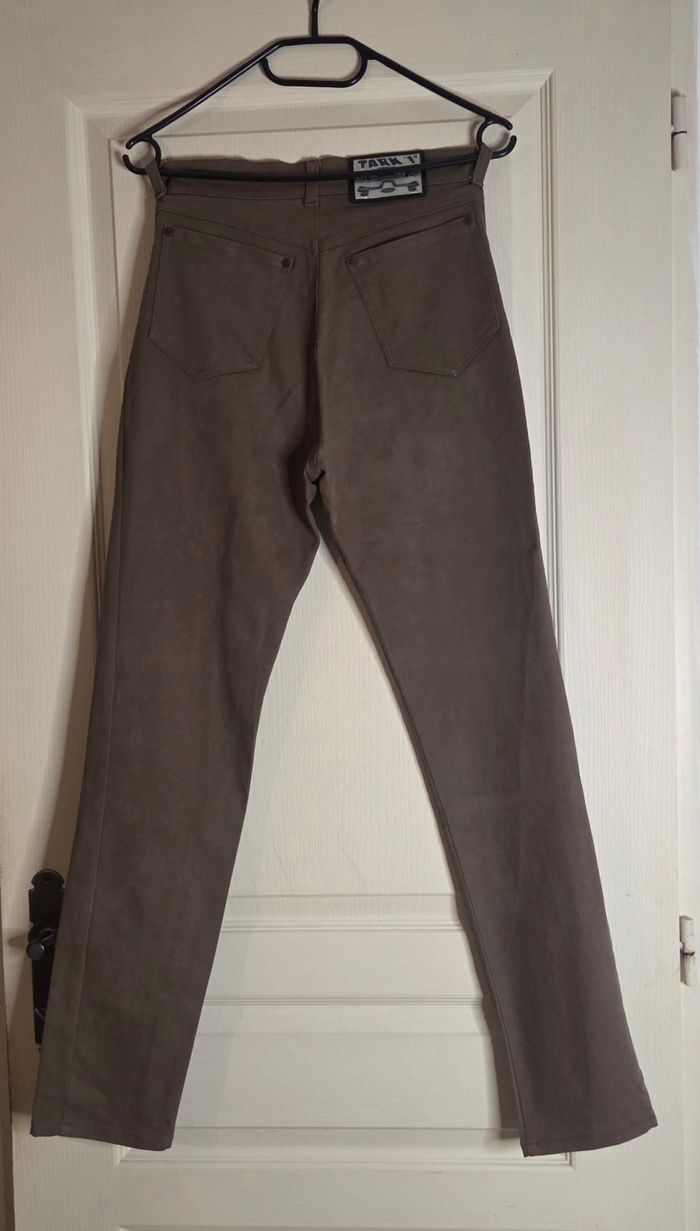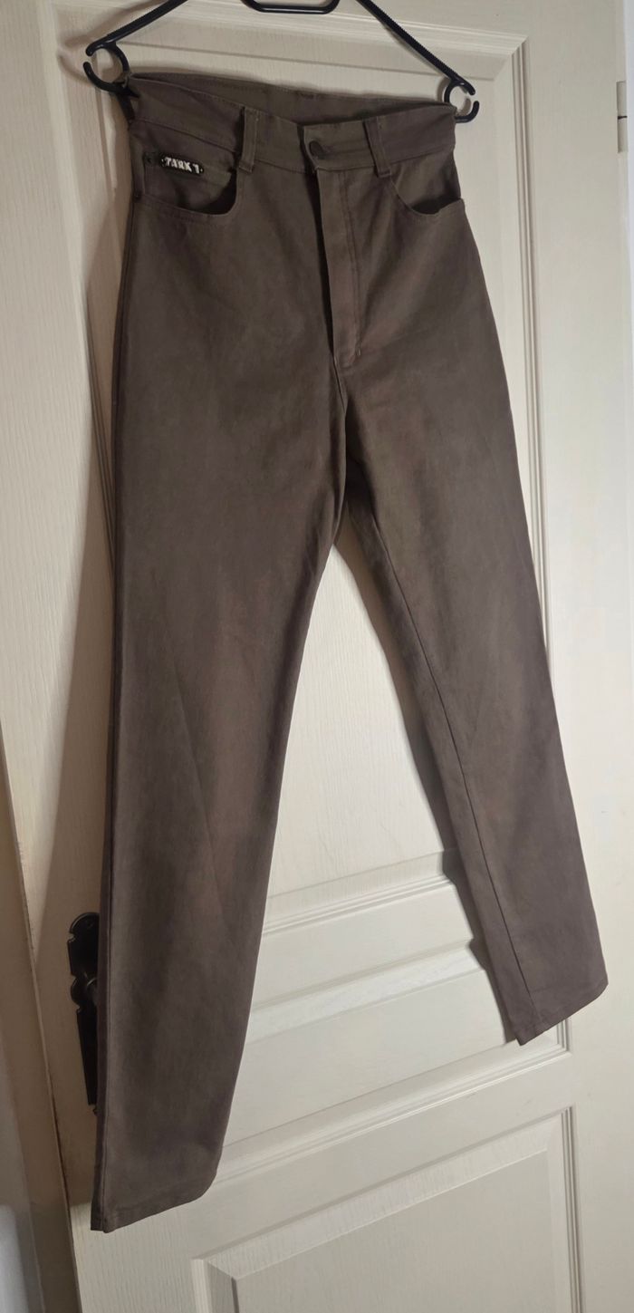Jean vintage TARK 1 Paris, modèle stretch ultra confortable, coupe flatteuse et intemporelle 🤎 Couleur taupe / marron glacé très tendance, facile à associer. 🔎 Les essentiels : Marque : TARK 1 Paris Taille : T3 (équiv. 38/40 environ) Longueur totale : 99/100 cm Longueur entrejambe : 73 cm Largeur taille à plat : 32 à 36 cm (stretch) Matière : 98 % coton, 2 % lycra (confort et élasticité) Fabrication : Made in France Coupe : Taille haute État : Très bon état ✨ Matière stretch qui galbe joliment la silhouette ✨ Coupe droite légèrement fuselée ✨ Style minimaliste chic et intemporel 📦 Envoi rapide 🌸 Envoi soigné 💬 Disponible pour toute question