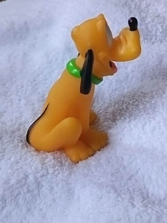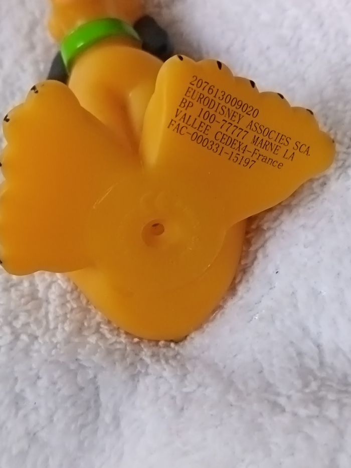 Superbe figurine de Pluto, le célèbre compagnon de Mickey ! Cette pièce provient directement de Disneyland Paris (marquage Euro Disney Associés SCA sous les pattes). Parfaite pour compléter une collection Disney ou pour décorer une chambre d'enfant. Personnage : Pluto Origine : Officiel Disneyland Paris (Marne-la-Vallée) Dimensions : Environ 13 cm de hauteur État : bon état général (voir photos pour les détails, couleurs bien vives) Détails : Collier vert iconique, queue dessinée à l'arrière, figurine assise. Envoi le mardi et le vendredi #skms62141_disney #Disney #Pluto #DisneylandParis #FigurineDisney #EuroDisney #MickeyAndFriends #JouetEnfant #DisneyVintage #PlutoDog #DisneyFan