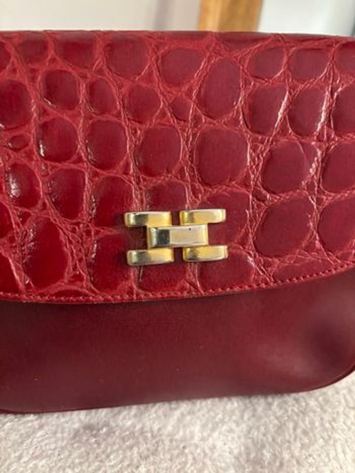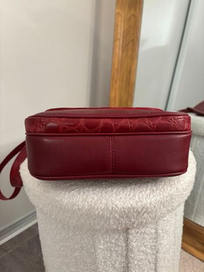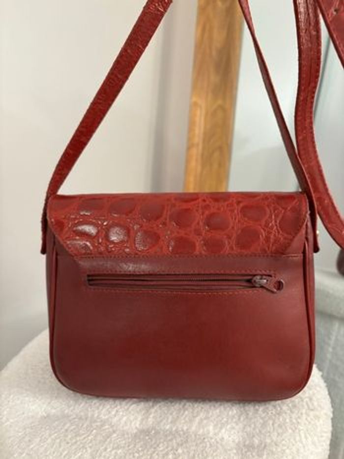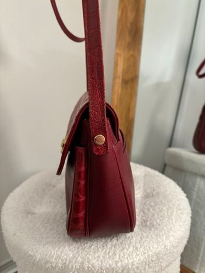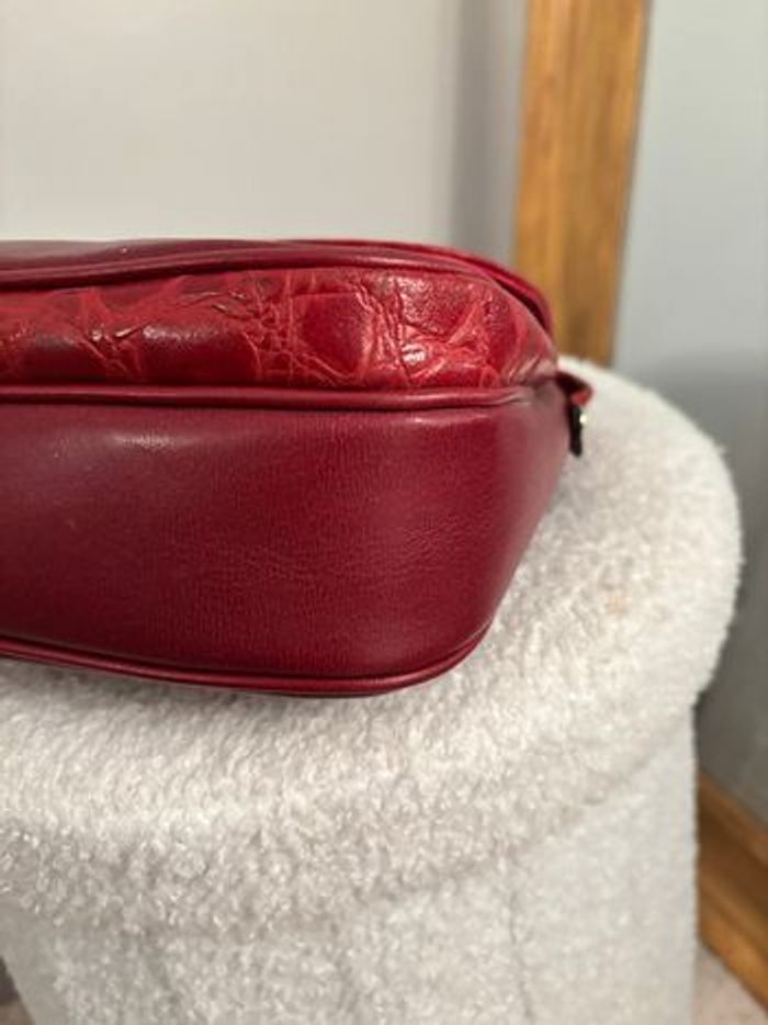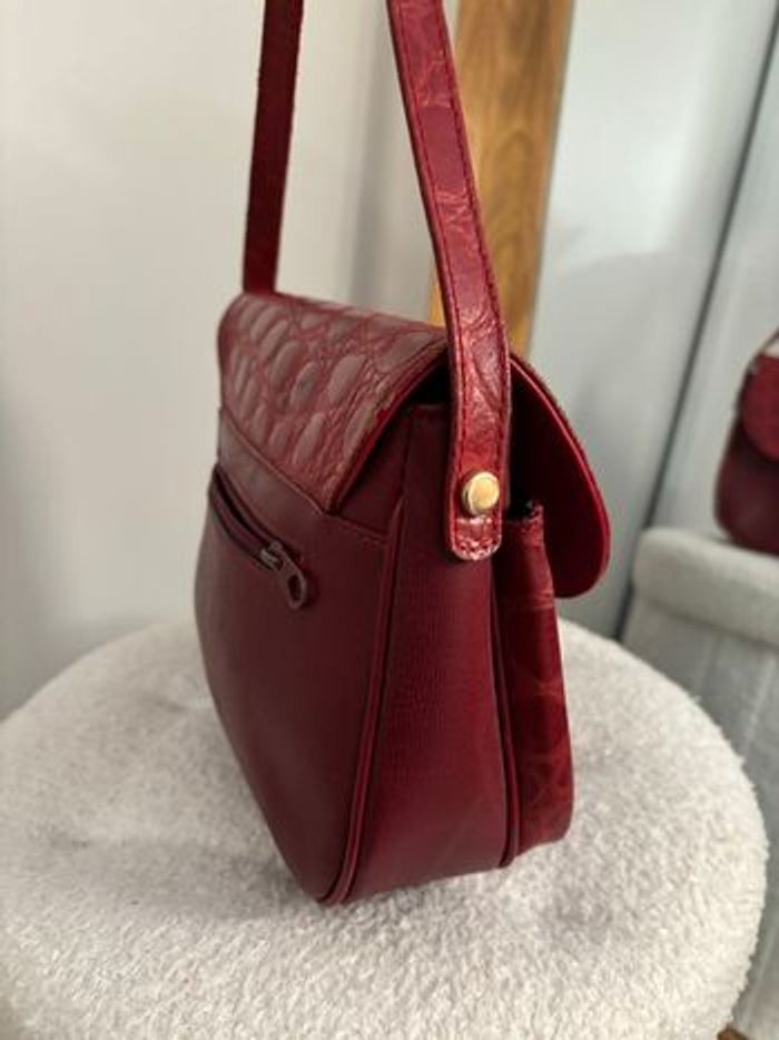 Sac vintage bordeaux effet croco Bandoulière réglable Rétro chic - photo numéro 9