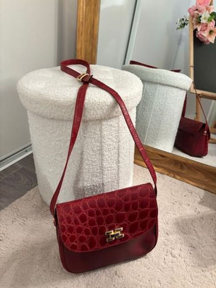 Sac vintage bordeaux effet croco Bandoulière réglable Rétro chic - photo numéro 1