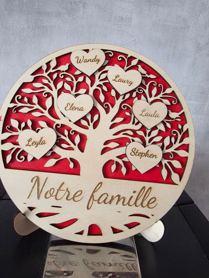 Arbre de vie gravées ✔ Texte personnalisable (Notre famille ou autre) ✔ Fond de couleur en option 🎨 💰 Tarifs : • Prénoms gravés (jusqu’à 6 cœurs) • Photos gravées (jusqu’à 6 cœurs) • Cœur supplémentaire : en option (prénoms) (photos) • Fond couleur : possible 📩 Me contacter en message privé pour créer votre arbre de vie sur mesure 🌿