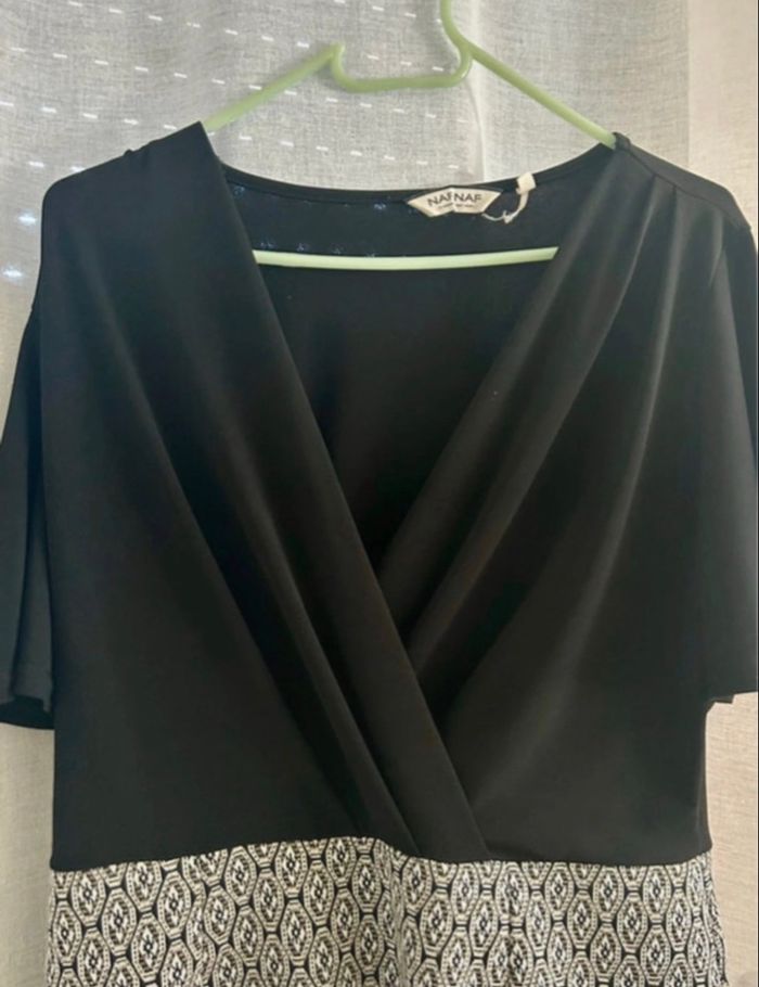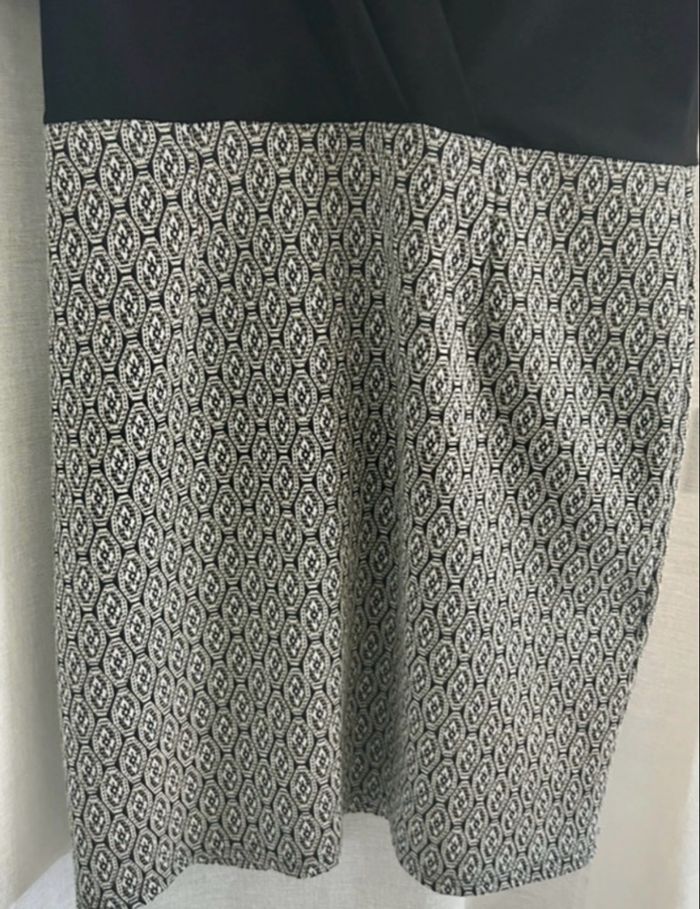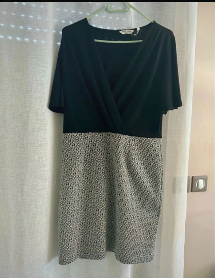 Très belle robe noire et blanche bi matière Haut noir fluide bas près du corps Mesure : aisselle / aisselle 52 cm Aisselle bas 71 cm