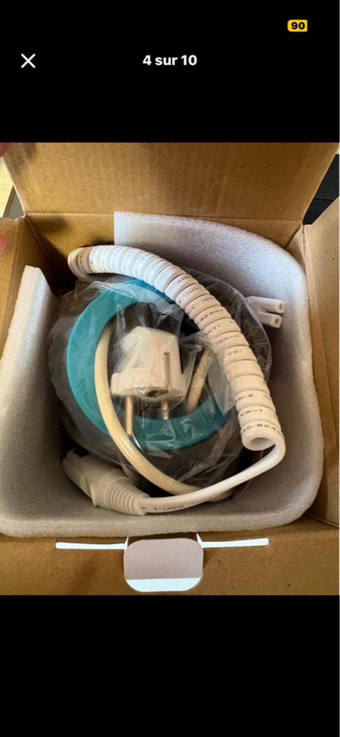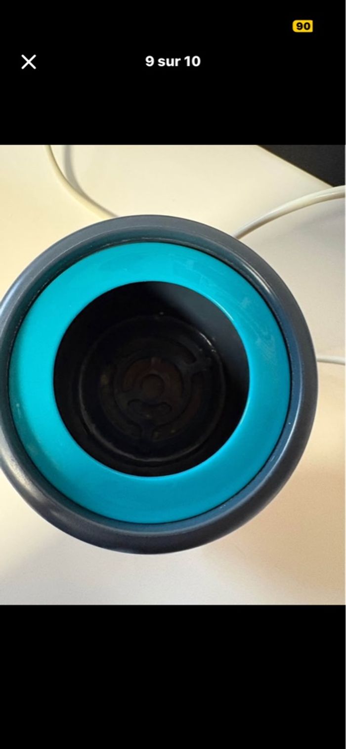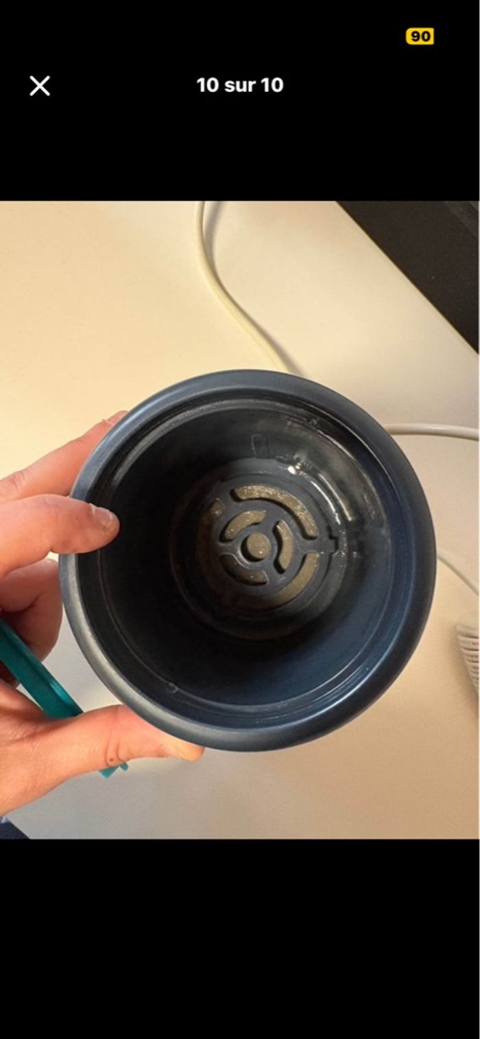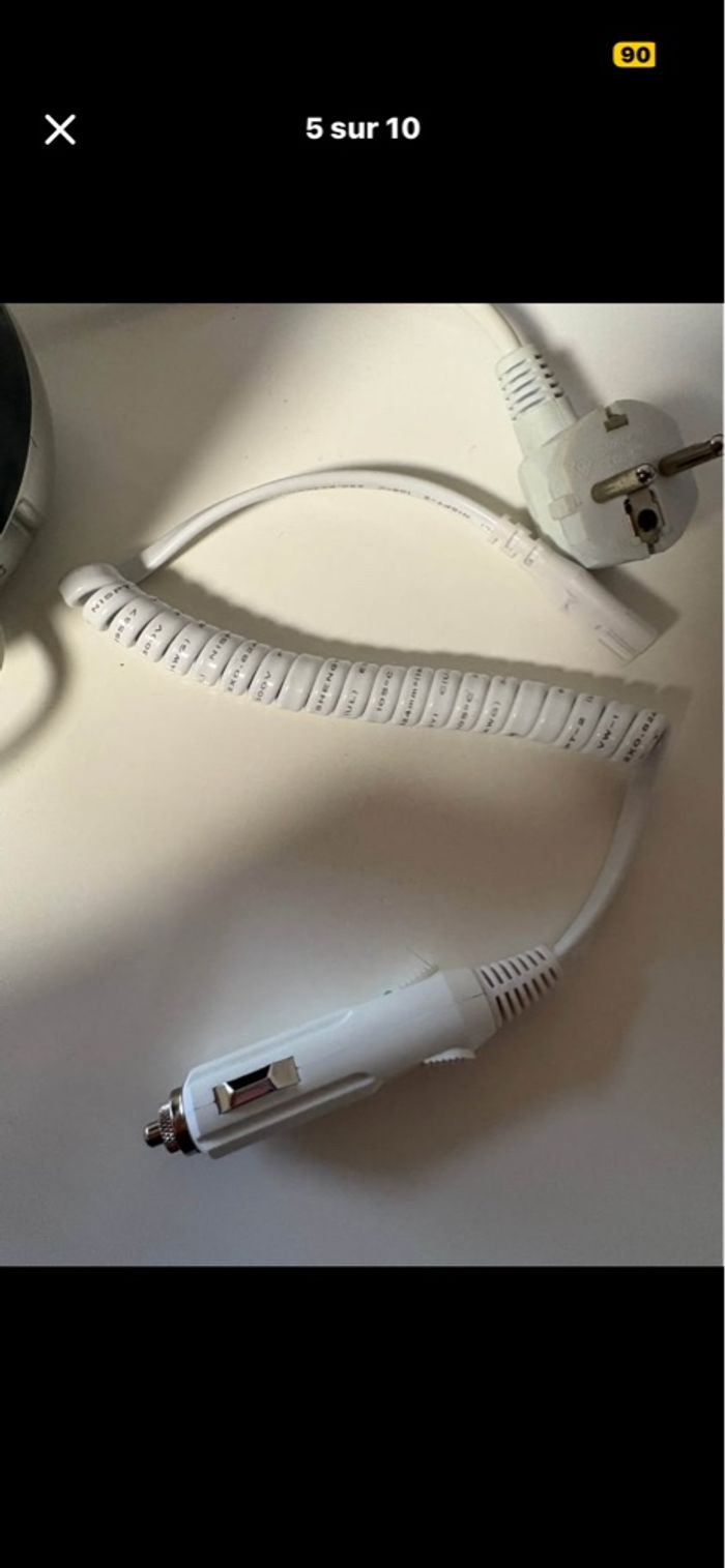 Chauffe bibi idéale pour la maison et en voiture Tout en parfait état un peux de calcaire à l’intérieur mais fonctionne parfaitement il très peux servis
