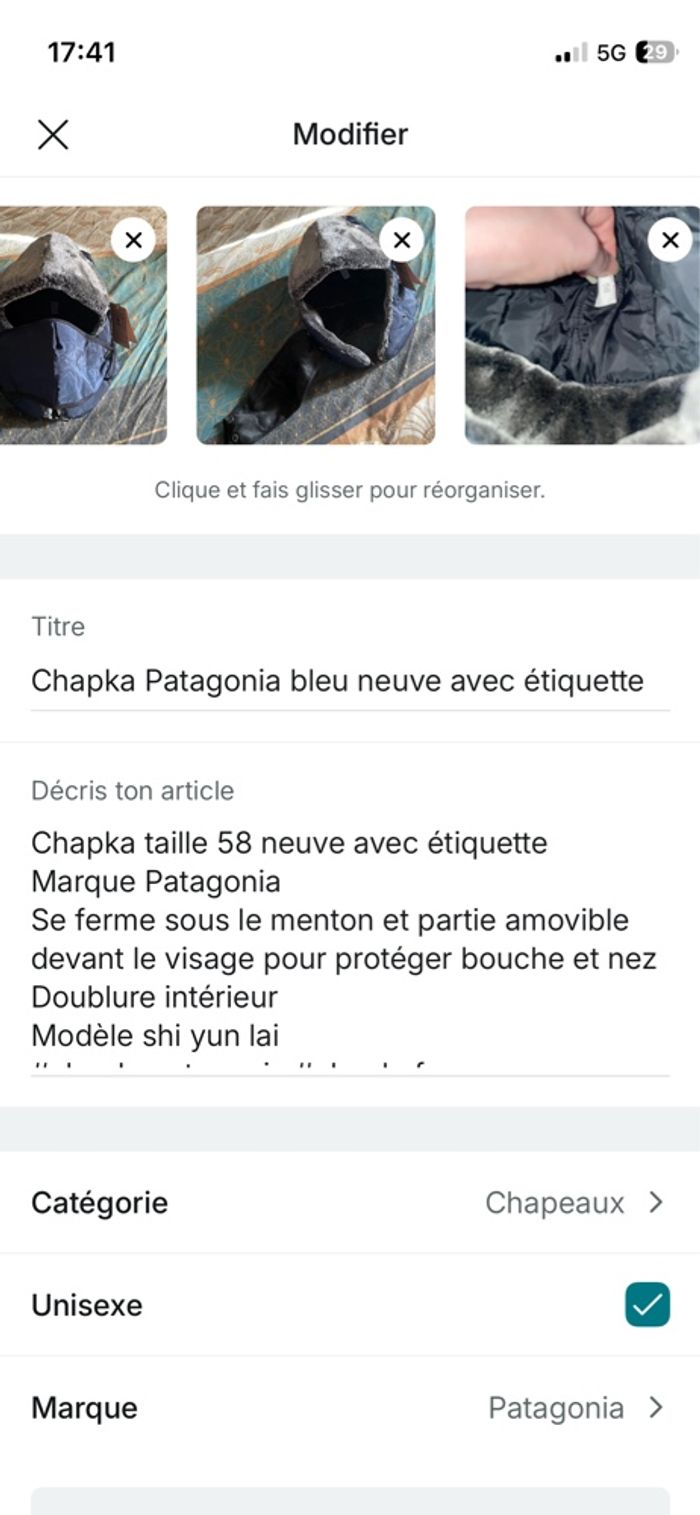 Chapka Patagonia 58 neuf avec étiquette  - photo numéro 1