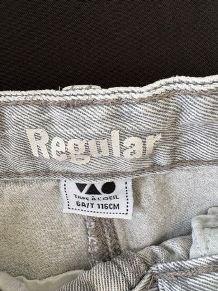 Jean TAO Gris, strass aux poches devant, coupe régular (coupe droite), fermé par pression et braguette Très bon état Taille 6ans (116cm)