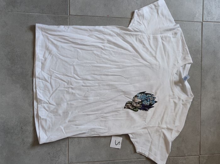 T-shirt blanc Dragon Ball taille S. Motif au cœur et dans le dos. Marque JHK. Neuf, sans étiquette. N'hésitez pas à regarder mes autres ventes, j’essaye de les classer au mieux. Je ne compose pas moi-même les lots pour vous laisser libre choix.