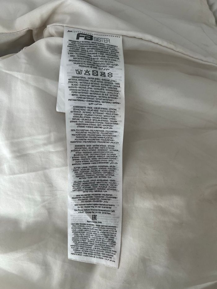 Je vends cette veste FBsister matelassée de couleur crème. - Type de produit : Veste - Taille : 36 - S - Couleur : Crème - Caractéristiques : Fermeture zippée, Col montant, Poches latérales N'hésitez pas à me contacter pour plus d'informations ou de photos.