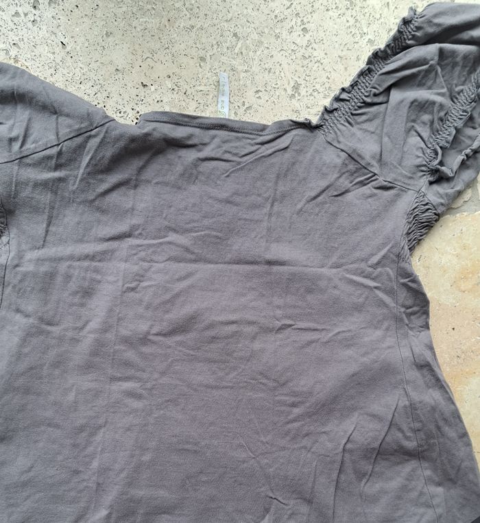 Tee shirt femme gris taille L gémo poitrine bandeau élastique, épaules degagées, en très bon etat - photo numéro 3