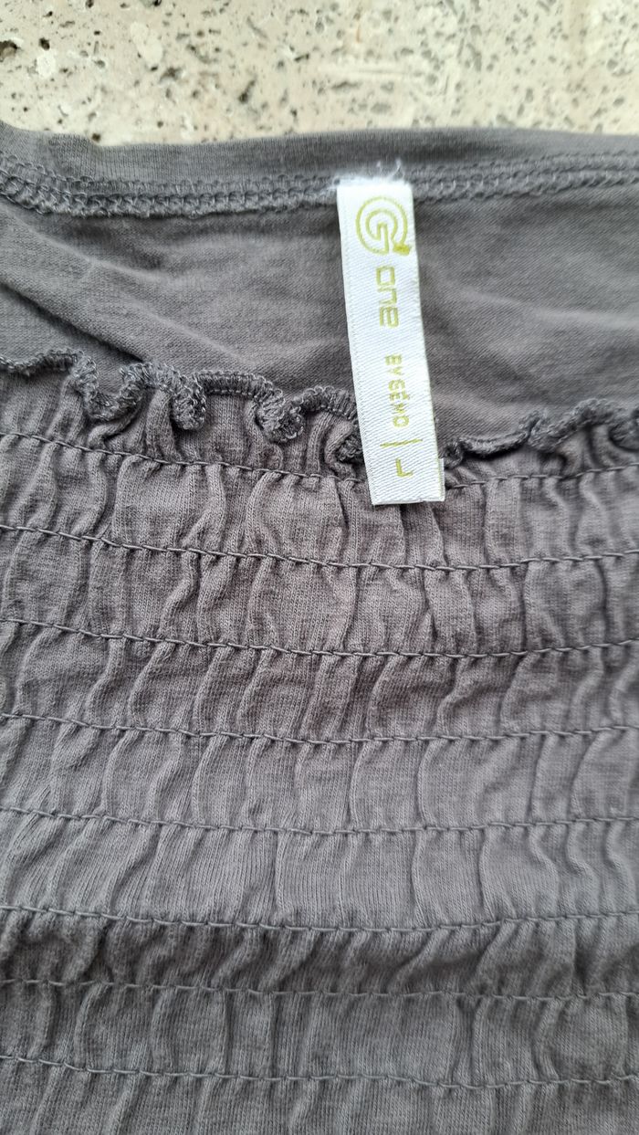 Tee shirt femme gris taille L gémo poitrine bandeau élastique, épaules degagées, en très bon etat - photo numéro 1