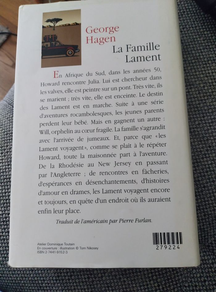 Roman, la famille Lament de George Hagen. Livre que j'ai bien aimé, personnages attachants.