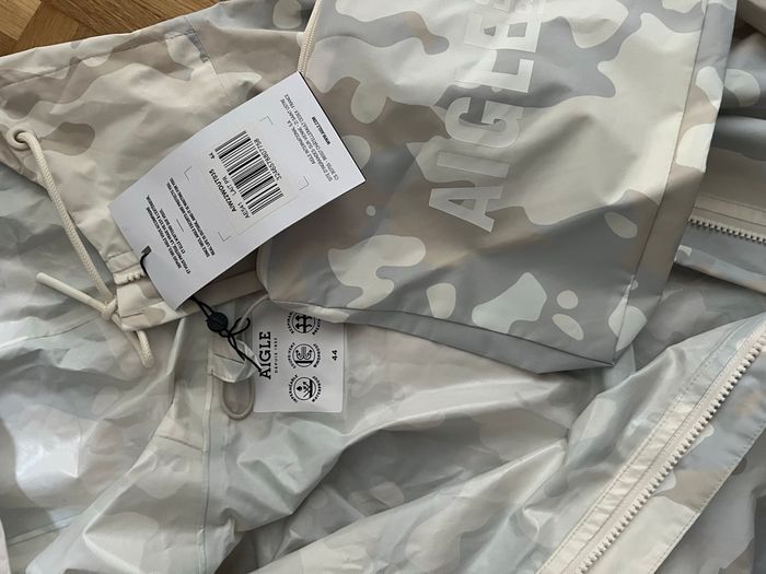 Veste imperméable légère de le marque Aigle Motif militaire, couleurs claires : beige, gris… Neuve avec étiquette + sa pochette Envoi rapide et soigné