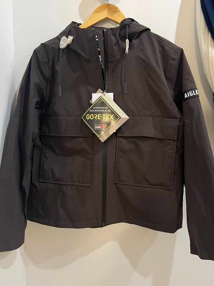 Veste courte imperméable Aigle avec technologie GoreTex Couleur marron chocolat 2 grandes poches - fermeture éclair Envoi rapide et soigné