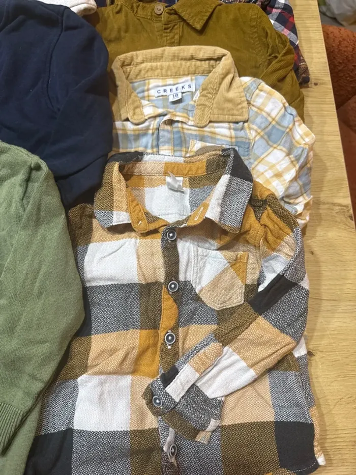 Lot de vêtements pour garçon en taille 18 mois 8 pantalons / jean 3 short 5 chemises à manches longues 4 pulls Un gilet chaud moumouté 7 jogging Le tout en taille 18 mois pour garçon Indissociable Pas de trous ni de taches en très bon état