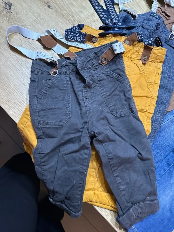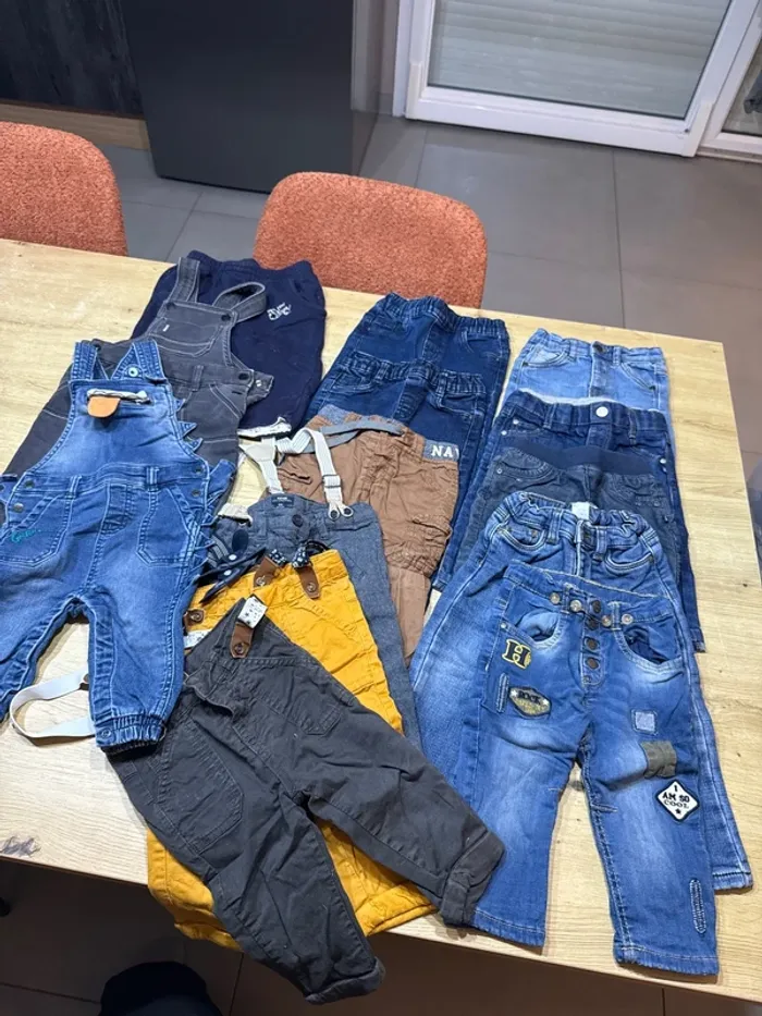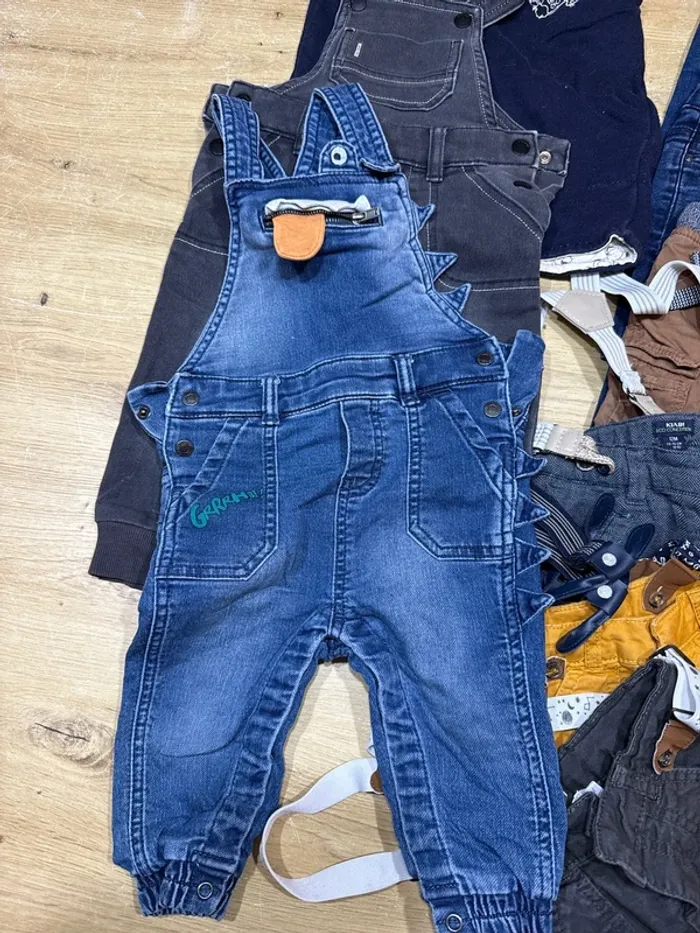 Lot pour garçon en taille 12 mois en très bon état - un jogging - 2 salopettes - 12 jeans / pantalons / dont certains avec bretelles