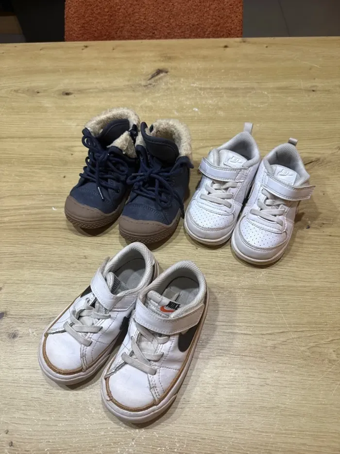 Plusieurs paires de chaussures pour garçon taille 23 - basket Nike blanches taille 23.5 - basket Nike taille 23 - bottines d’hiver bleu taille 23 En très bon état