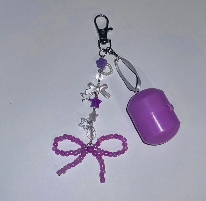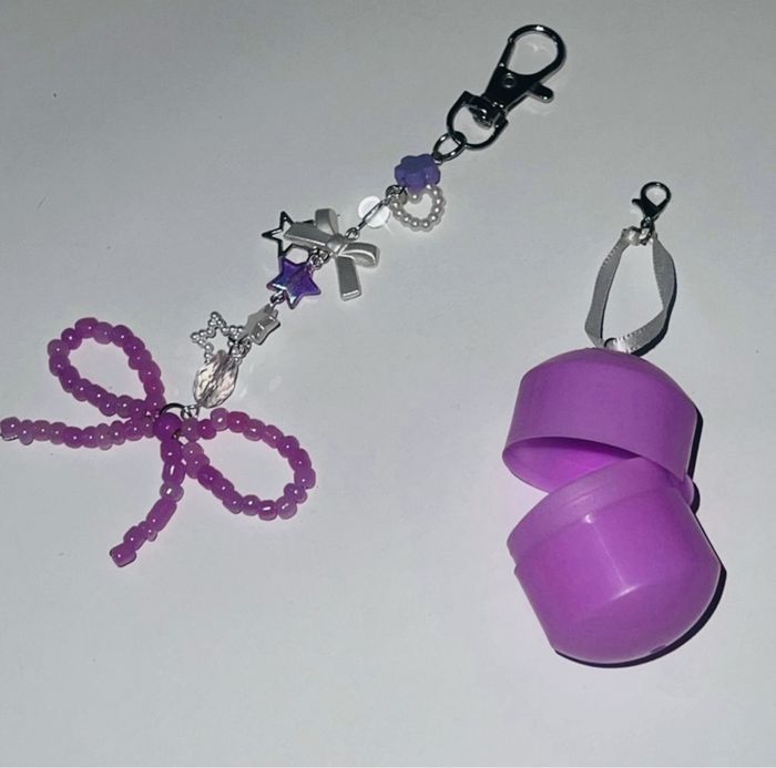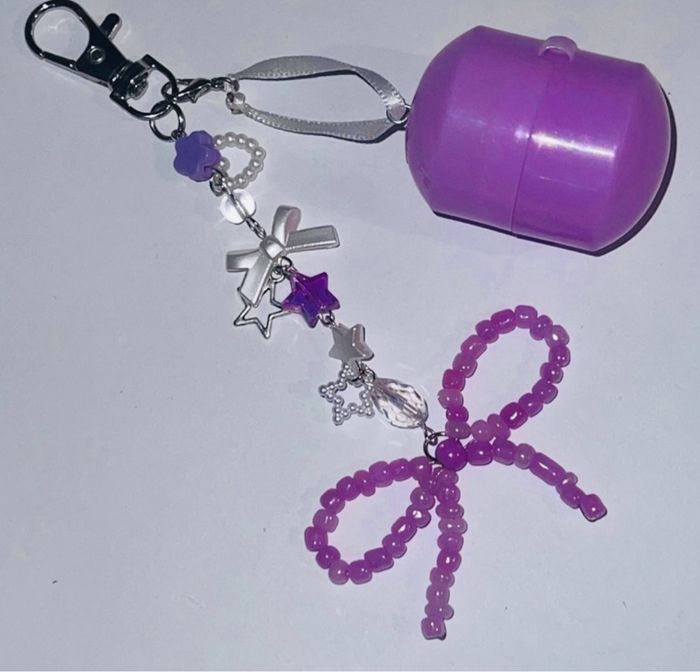 Porte clé Keychain chute mauve Lila violet avec noeud en perle  - photo numéro 3