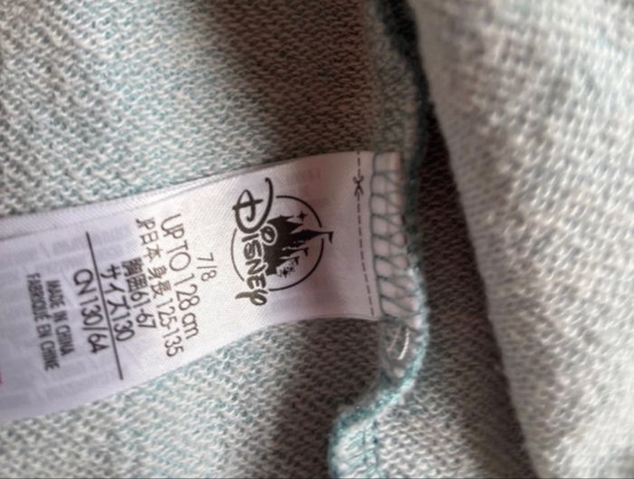 À vendre veste capuche Reine des neiges avec sa cape à l’arrière bleu turquoise à paillettes avec sequins devant très bon état 7/8 ans